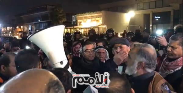 احتج العشرات أمام السفارة الأمريكية في عمان بالتزامن مع موعد اعلان الرئيس الأمريكي دونالد ترامب ورئيس وزراء الاحتلال بنيامين نتنياهو خطة السلام في الشرق الأوسط المعروفة باسم “صفقة القرن”.
