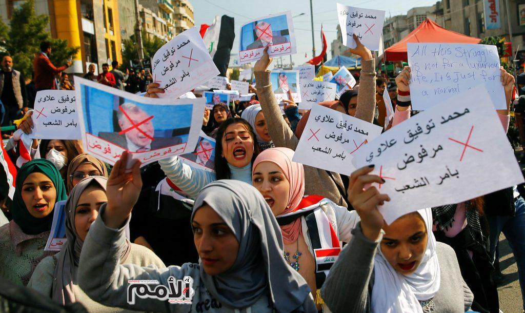 كذلك، جدد المحتجون في ساحة الحبوبي، بذي قار (جنوب العراق) تكليف رفضهم تكليف محمد علاوي، هاتفين “محمد توفيق علاوي مرفوض باسم السيستاني مرفوض”.