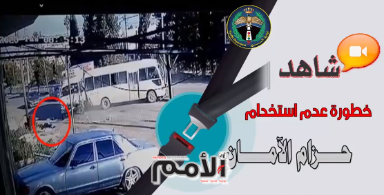 ونشرت مقطع فيديو لحادث اصطدام وقع قبل ايام في محافظة اربد بالقرب من اشارة حوارة الضوئية، حيث تسبب عدم استخدام حزام الأمان إلى قذف أحد الركاب خارج المركبة وارتطامه بالأرض.