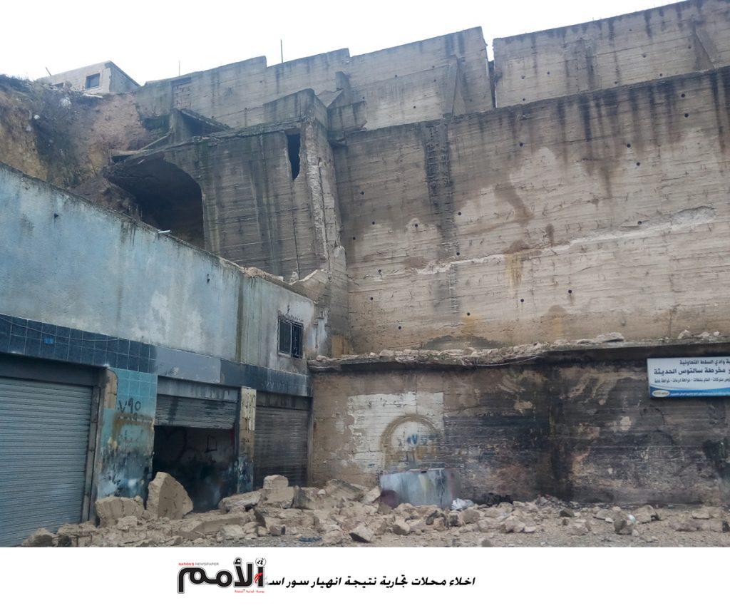اخلاء محلات تجارية نتيجة انهيار سور استنادي بالسلط