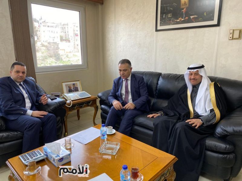 عمان – الامم – بحث وزيرا المالية الدكتور محمد العسعس، والتخطيط والتعاون الدولي الدكتور وسام الربضي خلال اجتماعهما في وزارة المالية مع سفير خادم الحرمين الشريفين لدي المملكة الأردنية الهاشمية نايف بن بندر السديري مجالات التعاون المشترك بين البلدين لا سيما ما يتعلق بالتنسيق حول مشاركة الأردن في اجتماعات مجموعة العشرين التي تستضيفها المملكة العربية السعودية خلال هذا العام.
