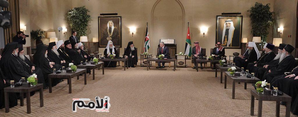 وأكد جلالته أن الأردن مستمر في تحمل مسؤوليته التاريخية في حماية المقدسات الإسلامية والمسيحية في القدس الشريف، من منطلق الوصاية الهاشمية على هذه المقدسات، والحفاظ على الوضع التاريخي والقانوني القائم في المدينة. من جهتهم، شدد البطاركة الأرثوذكس، خلال اللقاء، على تمسكهم بوصاية جلالة الملك على الأماكن المقدسة المسيحية، وعلى أهمية الوصاية الهاشمية من أجل الحفاظ على الوضع التاريخي القائم في مدينة القدس.