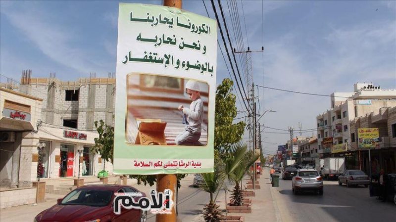 وة على النصائح العلمية، اتخذت بلدية الرمثا الأردنية، شمالي المملكة، من الأذكار النبوية والتعاليم الدينية، طريقاً لحث مواطنيها على الوقاية من فيروس “كورونا”.