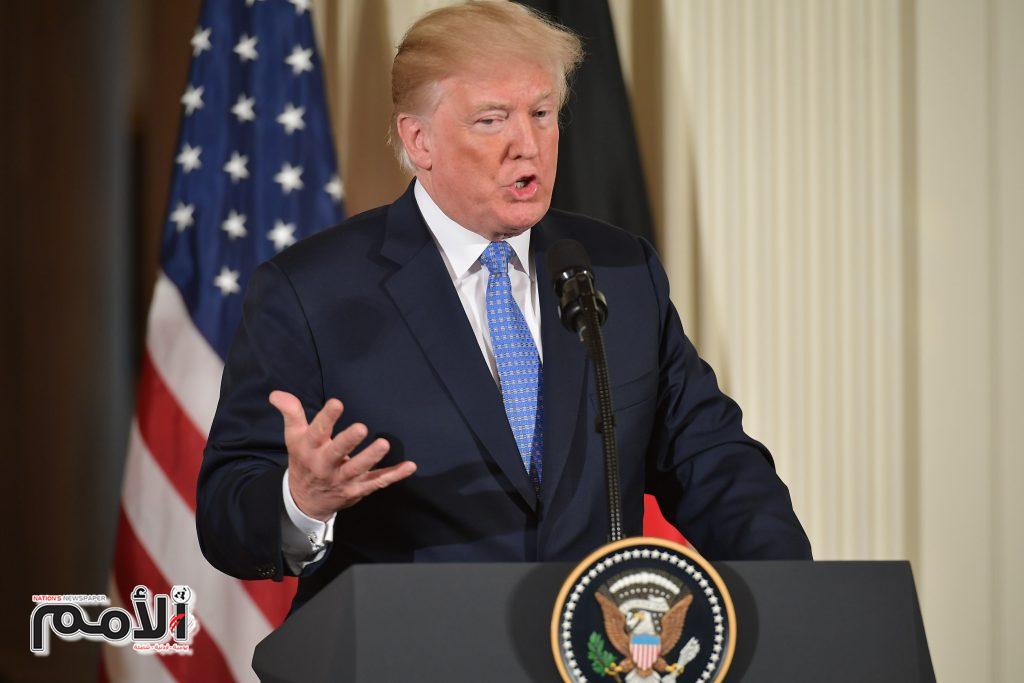US President Donald Trump speaks during a joint press conference with Germany's Chancellor Angela Merkel in the East Room of the White House on April 27, 2018 in Washington, DC. / AFP PHOTO / MANDEL NGAN