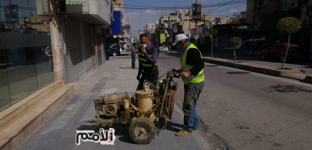 واضاف المومني بأن البلدية انتهت من تخطيط مسافة الامان امام المخابز والدكاكين والمحلات حفاظا على ارواح المواطنين بالابتعاد عن بعضهم اثناء عملية الشراء والبيع ولعدم انتقال اي عدوى بينهم .