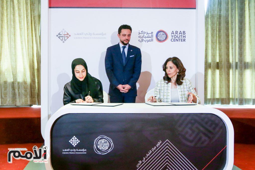 الأمير الحسين يشهد توقيع مذكرة تفاهم بين مؤسسة ولي العهد ومركز الشباب العربي