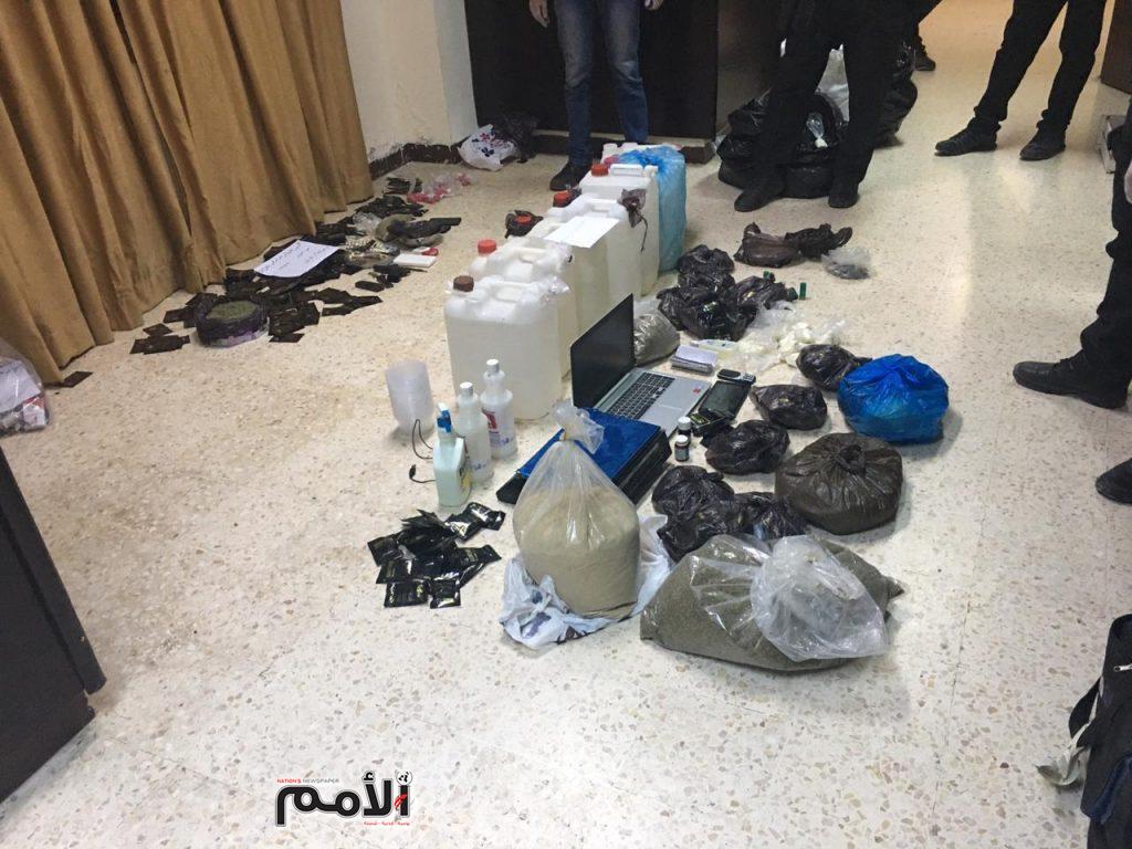 وجرى بعد ذلك تفتيش مزرعة كانا يستخدمانها لتصنيع مادة الحشيش المخدرة وضبط داخلها ٣ شوالات بداخلها مادة الحشيش الصناعي المخدرة و ١٢ كيساً من بودرة مادة الحشيش الصناعي المخدرة و٢٢ كيساً داخلها مادة الحشيش الصناعي المخدرة، وكميات كبيرة من المواد الكيميائية المستخدمة بتصنيع تلك المادة القاتلة وبوشر التحقيق معهما .