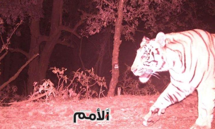 ورصدت كاميرا يتم التحكم فيها عن بعد النمر وهو يتجول في غابة بمنطقة داديلدهورا في غرب نيبال.