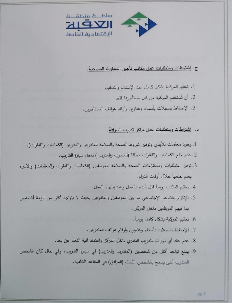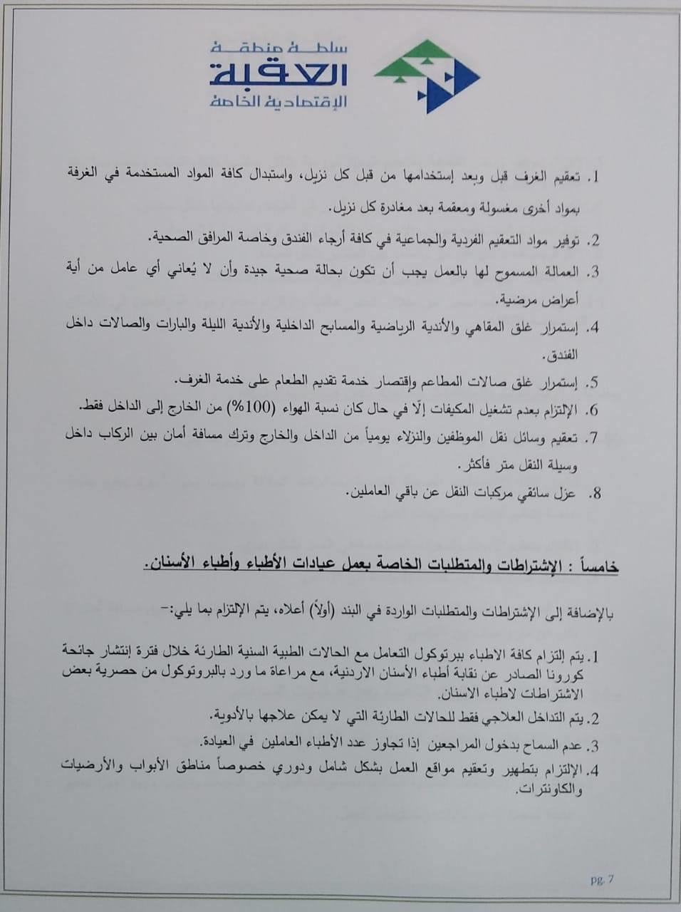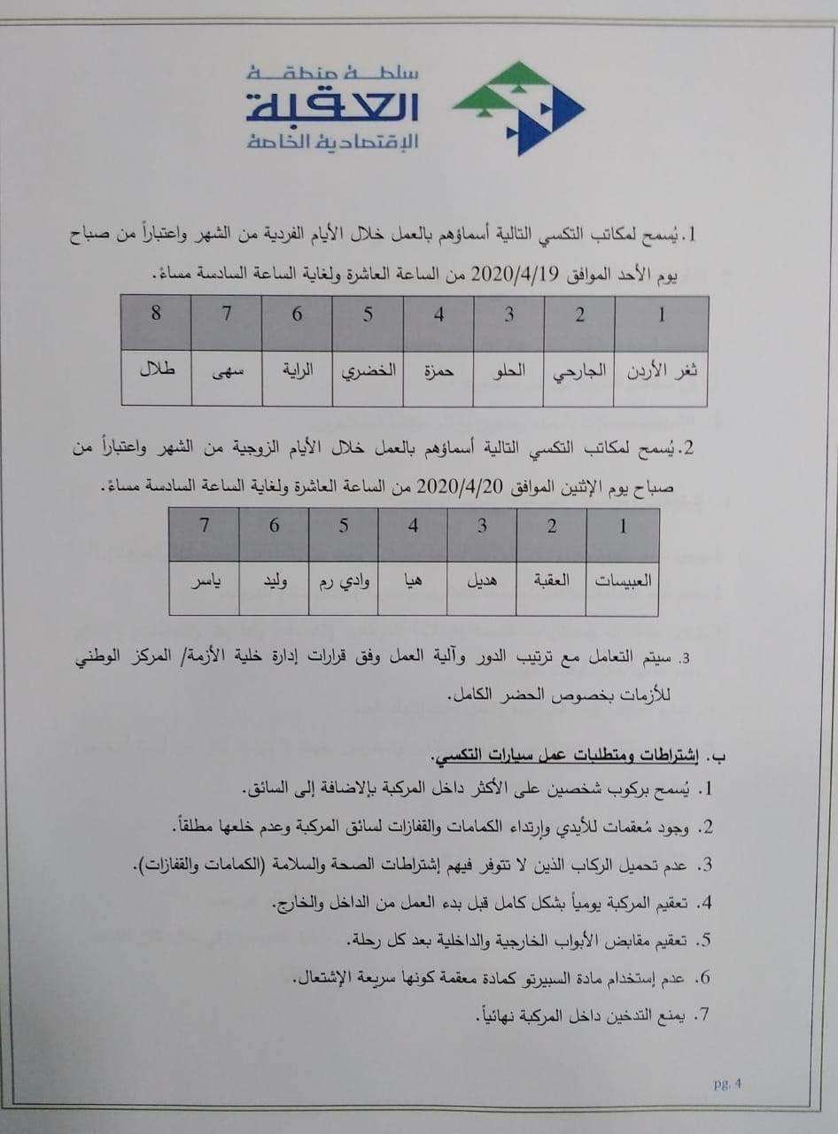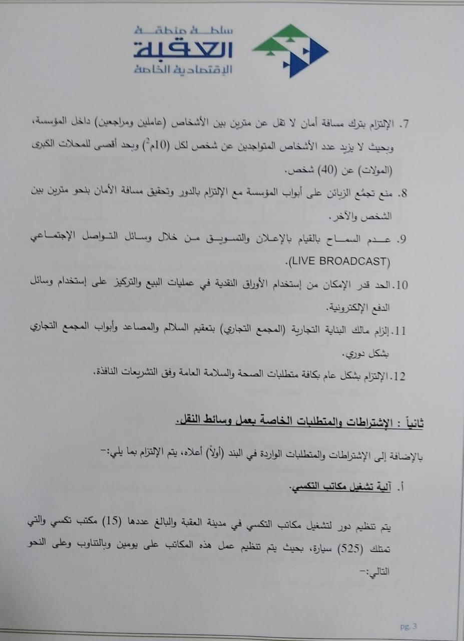 السماح للتكسي والصالونات والمطاعم والعيادات بالعمل في العقبة