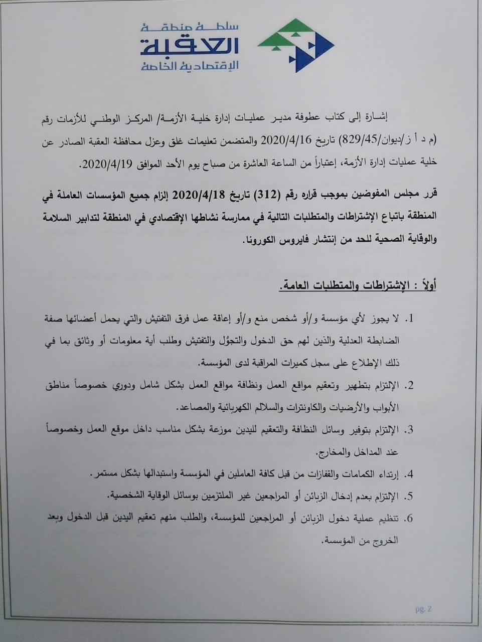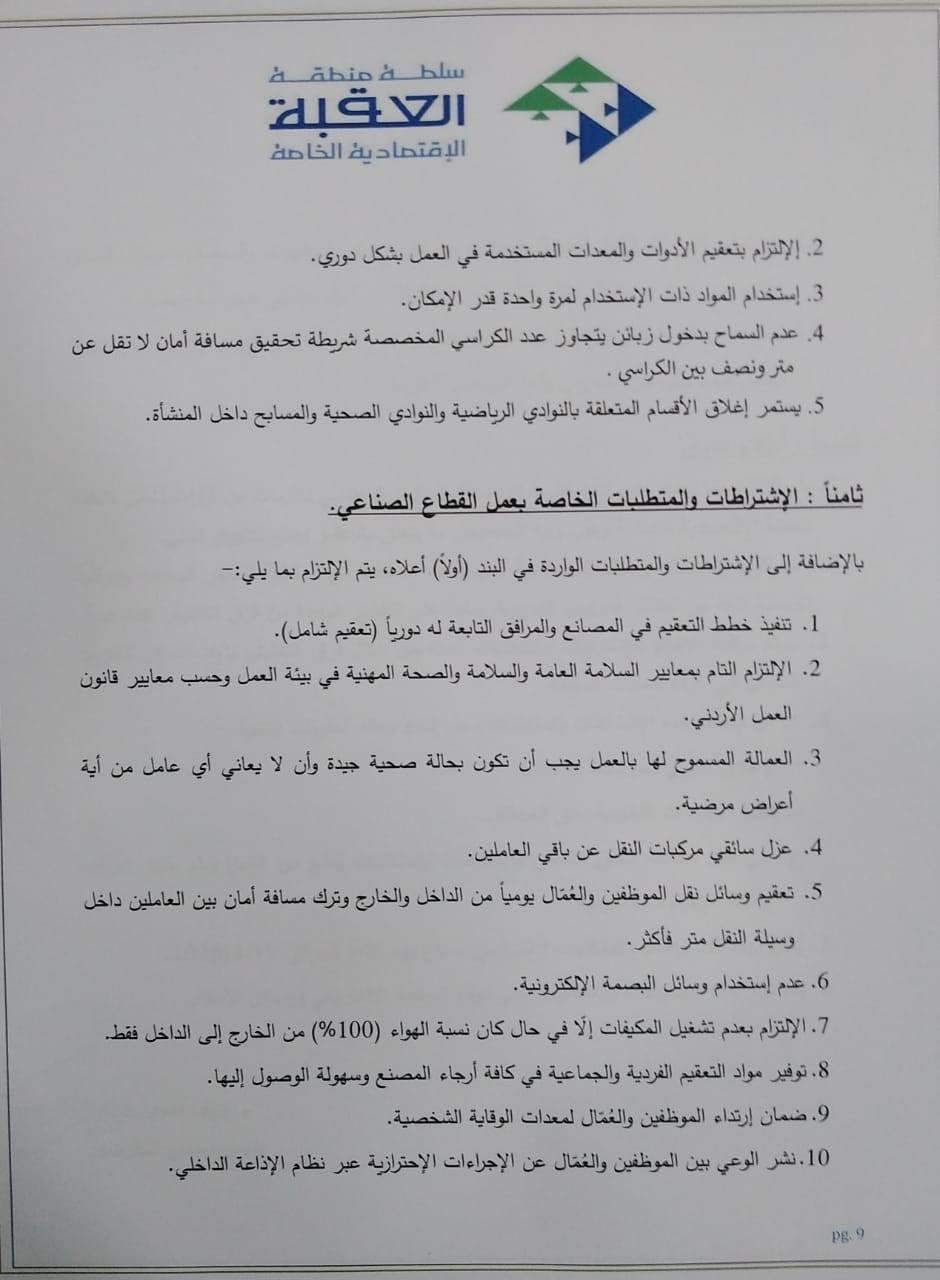 نشرت سلطة منطقة العقبة الاقتصادية الخاصة، اشتراطات ومتطلبات ممارسة المؤسسات نشاطها الاقتصادي في المناطق التابعة لها.