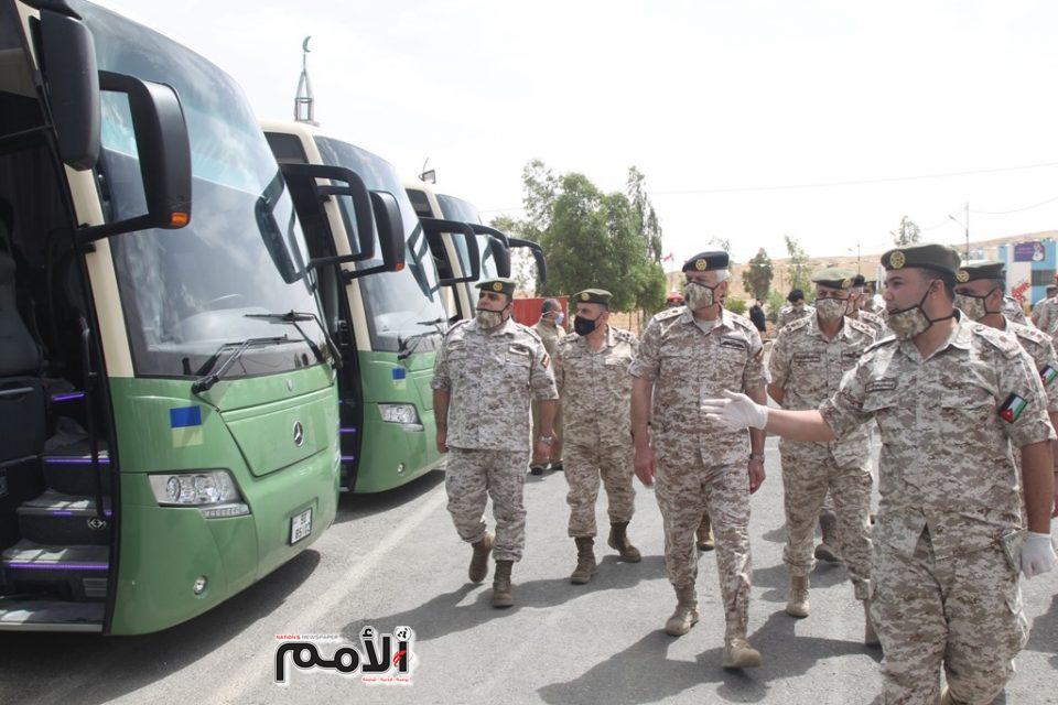 واستمع اللواء الركن الحنيطي، بحضور مساعد رئيس هيئة الأركان المشتركة للإدارة والقوى البشرية، إلى إيجاز قدمه قائد مجموعات النقل العام حول طبيعة المهام والواجبات التي قامت بها المجموعات خلال الفترة الماضية والمتزامنة مع انتشار فيروس كورنا المستجد، والتي تمثلت بنقل المحجور عليهم من مطار الملكة علياء إلى مناطق الحجر المخصصة لهم في منطقة البحر الميت، إضافة إلى المساهمة بنقل المرضى خلال فترة الحظر من وإلى المستشفيات، كما تقوم المجموعات حالياً بنقل السائقين الداخلين للحدود الأردنية إلى أماكن الحجر المعدة لهم.