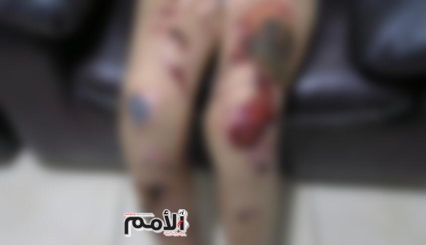واضاف الناطق الاعلامي انه جرى على الفور نقل الطفل للمستشفى وادخل المستشفى لتلقي العلاج واحتصل على تقرير طبي يشعر بانه يعاني من حروق من الدرجة الثانية والثالثة في مناطق متفرقة من جسده ومضى عليها فترة زمنية اضافة لوجود كدمات متعددة في منطقة الوجه والكتف والراس .