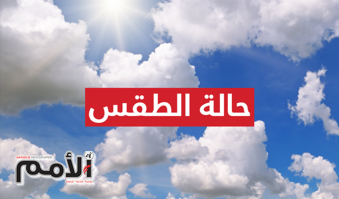 وحسب تقرير دائرة الأرصاد الجوية تبقى الأجواء يوم غد لطيفة الحرارة في المرتفعات الجبلية ومعتدلة في باقي المناطق، مع ظهور الغيوم المنخفضة خاصة في شمال ووسط المملكة، وتكون الرياح شمالية غربية معتدلة السرعة تنشط على فترات.