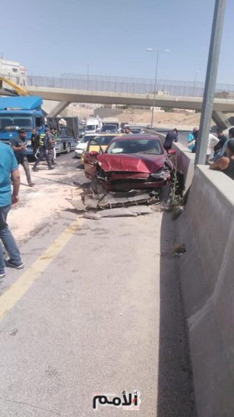 أصيب شخصان في حادث تصادم وقع في نهاية شارع الـ 100 باتجاه محافظة الزرقاء.