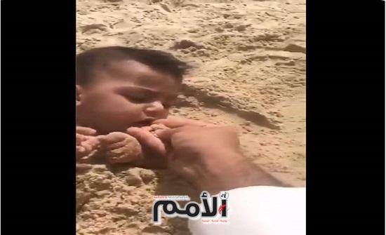 بالفيديو .. يدفن طفلا ويطعمه الرمال