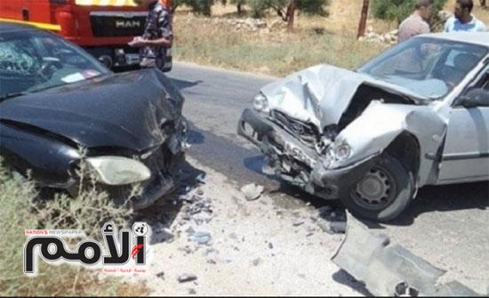 اصيب 10 اشخاص بجروح ورضوض في مختلف أنحاء الجسم، صباح اليوم الاحد، اثر حادث تصادم وقع ما بين حافلة ركوب متوسطة  وأربع مركبات  بمنطقة خريبة السوق، جنوب العاصمة عمان.