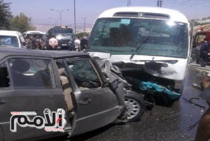 إصابة 17 شخص اثر حادث تصادم مركبة وباص في جرش