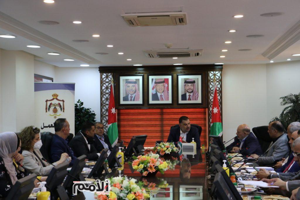 وحضر الإجتماع رئيس ديوان التشريع والرأي فداء الحمود ورئيسة لجنة العمل في مجلس الأعيان الدكتورة سوسن المجالي ورئيس لجنة العمل النيابية خالد ابو حسان ورئيس غرفة تجارة الأردن العين نائل الكباريتي ورئيس غرفة صناعة الأردن فتحي الجغبير ورئيس الاتحاد العام لنقابات عمال الأردن مازن المعايطة ومدير عام المؤسسة العامة للضمان الإجتماعي الدكتور حازم رحاحلة وأمين عام وزارة العمل فاروق الحديدي والأمينة العامة للجنة الوطنية لشؤون المرأة الدكتورة سلمى النمس ورئيس مركز بيت العمال حمادة أبو نجمة وعن اصحاب العمل في القطاعات المتضررة وزير النقل الأسبق مالك حداد ورئيس جمعية الفنادق الأردنية عبد الحكيم الهندي، بالإضافة إلى رئيس النقابة العامة للعاملين في الخدمات العامة والمهن الحرة خالد أبو مرجوب هذا بالإضافة لعدد من القيادات في كل من وزارة العمل والمؤسسة العامة للضمان الاجتماعي.