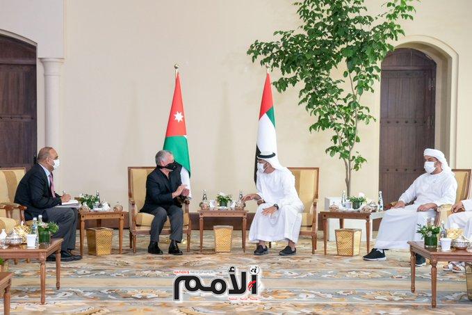 وأكد جلالة الملك وسمو ولي عهد أبوظبي حرصهما على الاستمرار في دعم العلاقات الأخوية بين الأردن ودولة الإمارات للوصول بها إلى آفاق جديدة من التعاون والعمل المشترك الذي يخدم مصالح البلدين وشعبيهما الشقيقين، منوهين بتوافق رؤية البلدين تجاه القضايا الإقليمية والدولية.