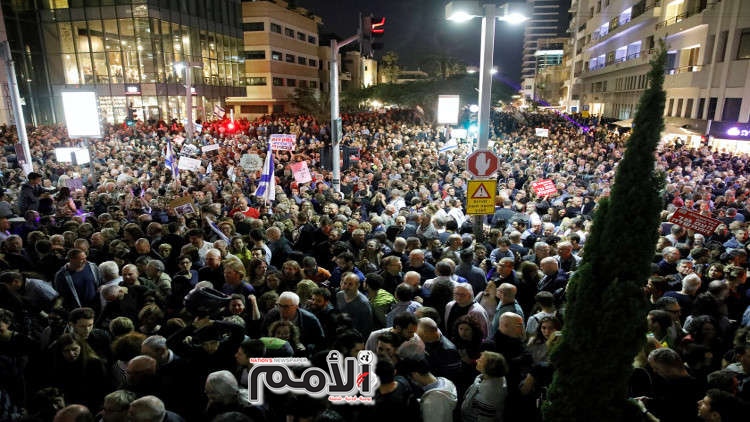وطالب المتظاهرون باستقالة نتنياهو، المتهم بالفساد والغش وخيانة الأمانة في ثلاث قضايا.
