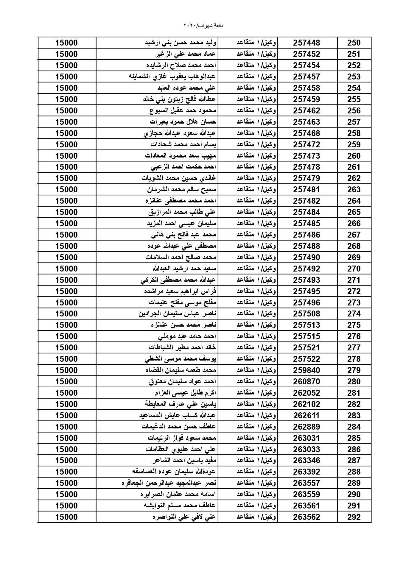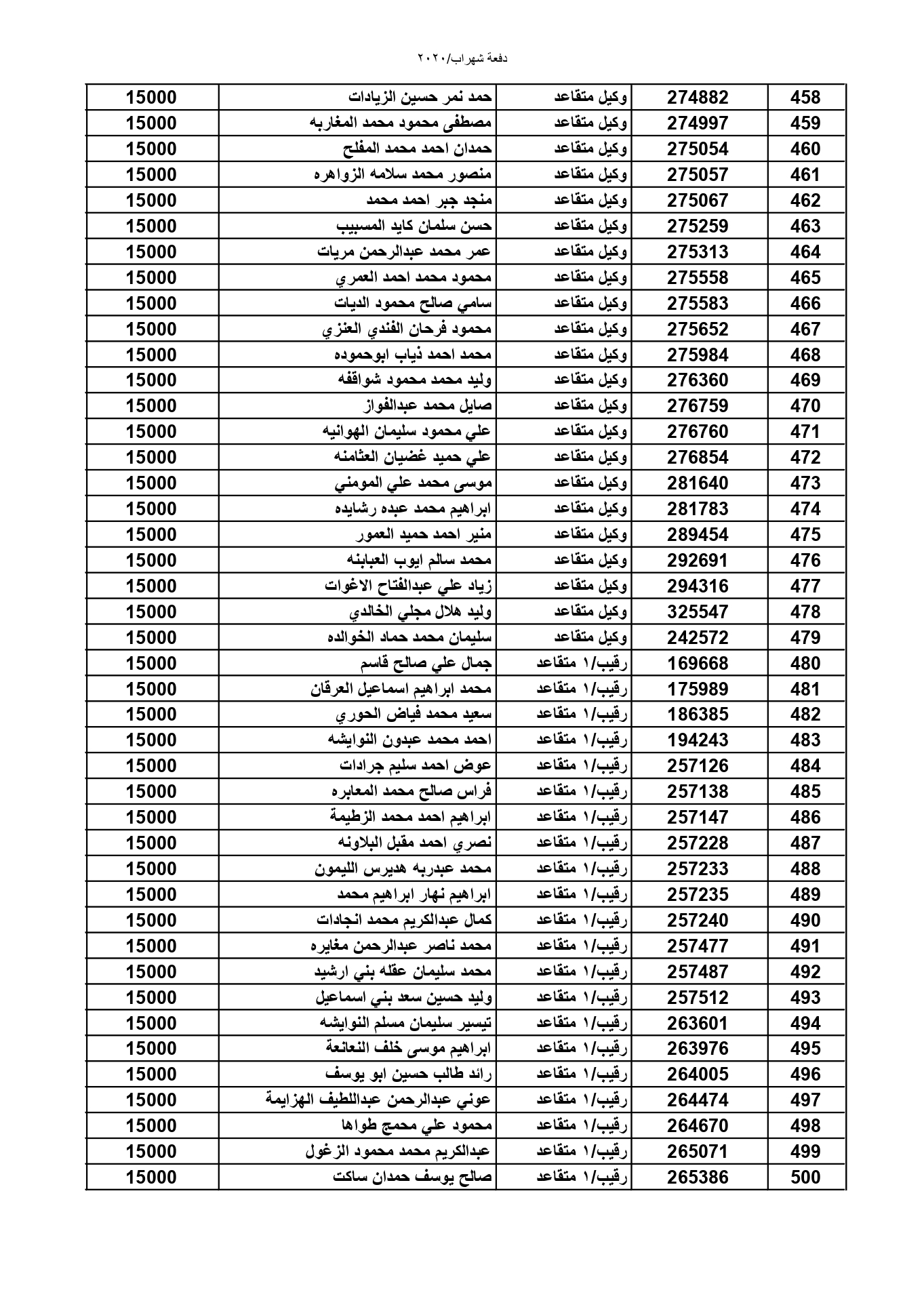 أعلنت القيادة العامة للقوات المسلحة الأردنية-الجيش العربي / مديرية مؤسسة الإسكان والأشغال العسكرية، عن اسماء الضباط وضباط الصف والأفراد المبينة الذين قد دنت أقدميتهم للحصول على قرض من صندوق الإسكان العسكري.