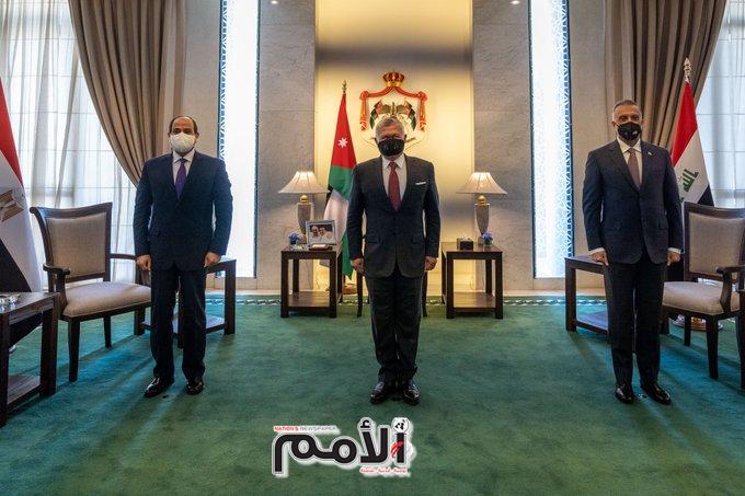 قال جلالة الملك عبدالله الثاني مساء الثلاثاء، “اللقاء الذي جمعني اليوم بأخي الرئيس عبدالفتاح السيسي وبأخي مصطفى الكاظمي خطوة مهمة في جهودنا لبناء التكامل الاقتصادي والعمل العربي المشترك بين بلداننا”