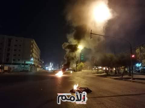 محتجون يغلقون شارعاً بالاطارات المشتعلة في الرصيفة