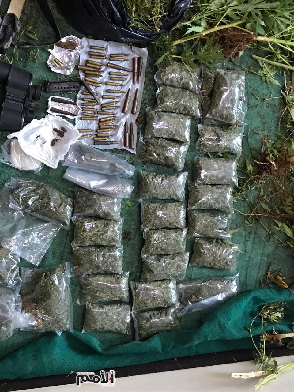 واضاف المصدر انه بتفتيش المنزل ضبطت مجموعة كبيرة من اشتال نبتة الماريجوانا المخدرة المزروعة في فناء المنزل اضافة الى مجموعة من الاشتال المجففة ، وثلاثون كيسا بداخلها ذات المادة المعدة لللبيع ،  و نصف كف من مادة الحشيش المخدر،  وقطع من ذات المادة المعدة للبيع ، وسلاح ناري وكمية من الذخيرة ، وبوشر التحقيق من الشخص المقبوض عليه تمهيدا لاحالته لمدعي عام محكمة امن الدولة .