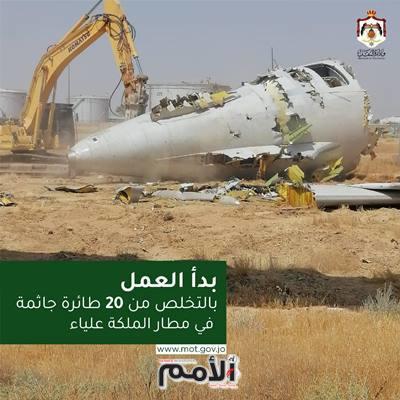 من ضمن إجراءات وزارة النقل للحفاظ على بيئه أمنه للطيران وسلامة الحركة الجوية في مطار الملكة علياء الدولي تم إعداد خطة للتخلص من الطائرات الجاثمه والتي تبلغ عددها 20 طائرة.