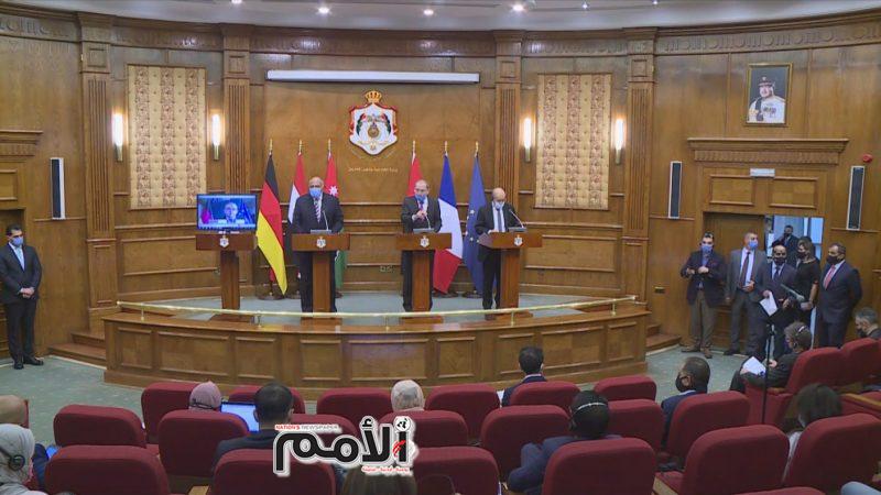 وقال، خلال مؤتمر صحفي مع وزراء خارجية مصر سامح شكري، وفرنسا جان إيف لودريان، وعن بعد وزير خارجية ألمانيا هايكو ماس، إن “الجميع متفق على حل الدولتين كأساس للسلام العادل والشامل في المنطقة”.