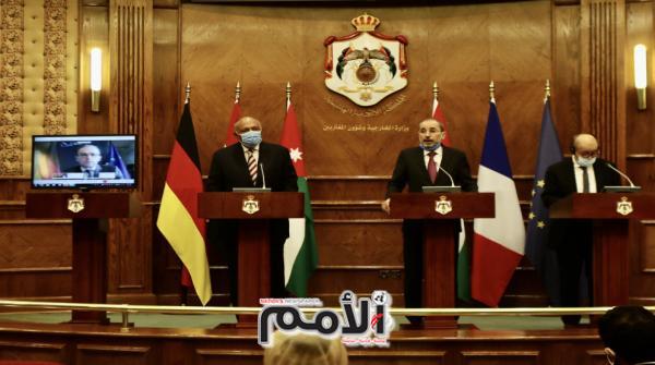عقد وزراء خارجية المملكة الأردنية الهاشمية وجمهورية مصر العربية والجمهورية الفرنسية وجمهورية ألمانيا الاتحادية اجتماعا في عمَان لاستكمال تنسيقهم وتشاورهم حول سبل دعم عملية السلام في الشرق الأوسط بهدف تحقيق السلام العادل والشامل والدائم.