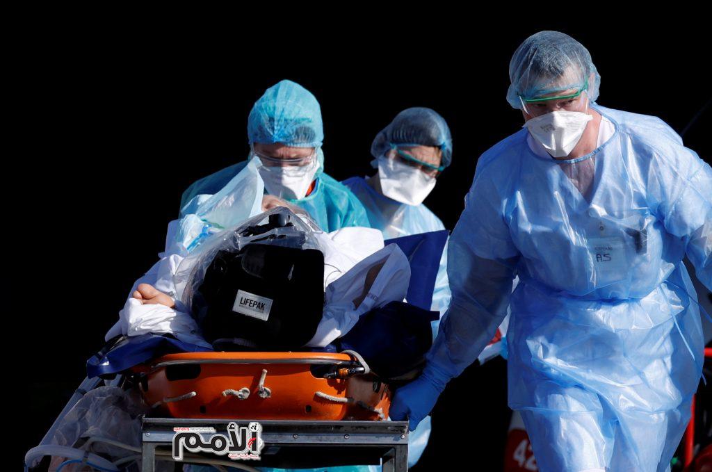 FILE PHOTO: A patient infected with coronavirus is carried on a stretcher by a French rescue team before being transferred by a helicopter of the civil security (Securite Civile) from Strasbourg university hospital to Pforzheim in Germany as the spread of the coronavirus disease (COVID-19) continues, in France, March 24, 2020. REUTERS/Christian Hartmann - RC2FQF9I7P85/File Photo