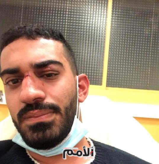 ونشر أبو عيد صورا تظهر آثار الاعتداء عليه وتلقيه العلاج داخل مركبة الإسعاف.