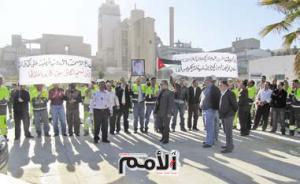 نفذ العاملون الذين تم فصلهم من شركة اسمنت لافارج الأردن اعتصاما أمام البوابة الرئيسية للشركة في مدينة الفحيص اليوم الثلاثاء ، احتجاجا على عدم امتثال الشركة للقرارات الصادرة عن القضاء والتي تنص على تعهدها بعدم فصل أي موظف إلا بموجب اتفاقية مع النقابة العامة للعاملين في البناء بالأردن.