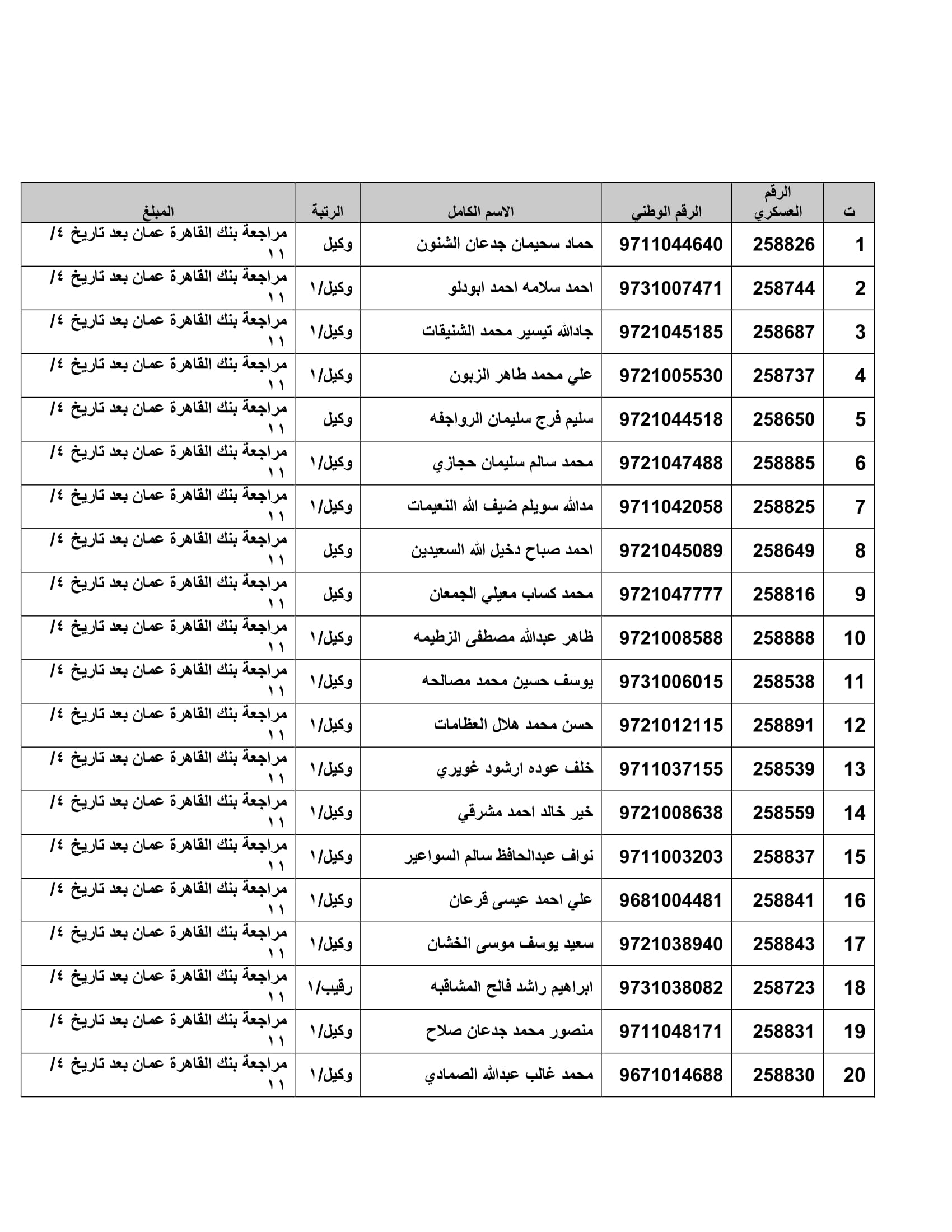 أعلنت القيادة العامة للقوات المسلحة الجيش العربي، أسماء المستحقين لقرض الاسكان العسكري لشهر تشرين ثاني 2020