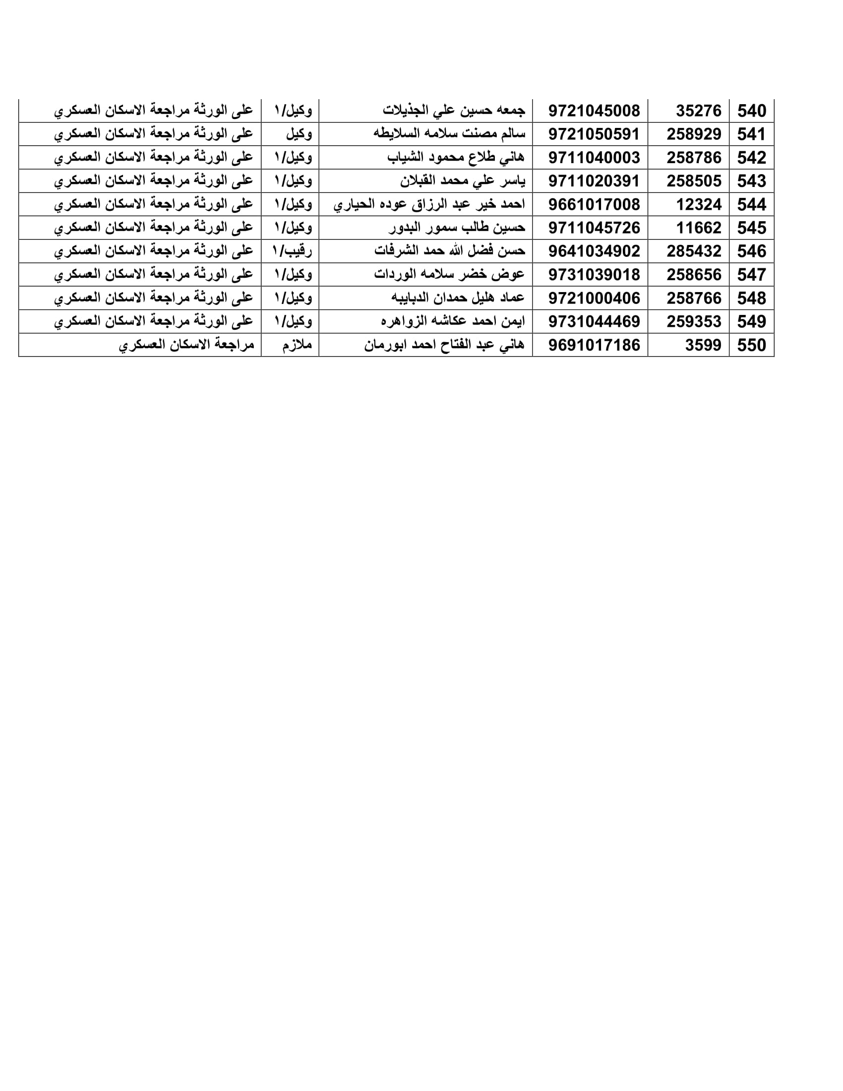 المستحقون لقرض الإسكان العسكري لشهر تشرين ثاني (اسماء)
