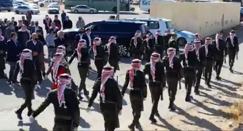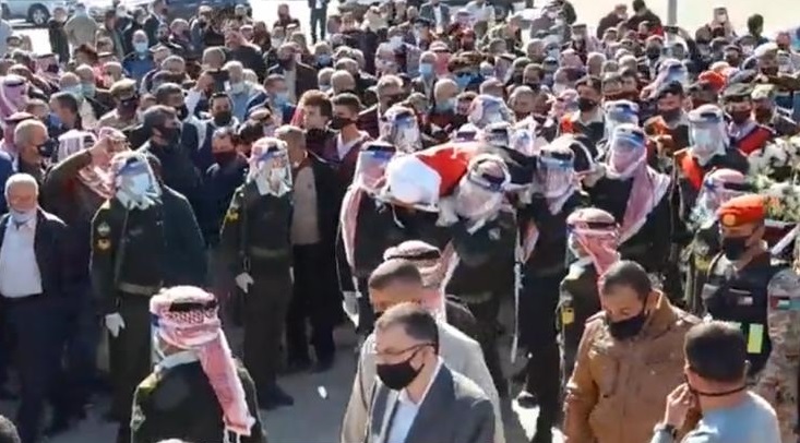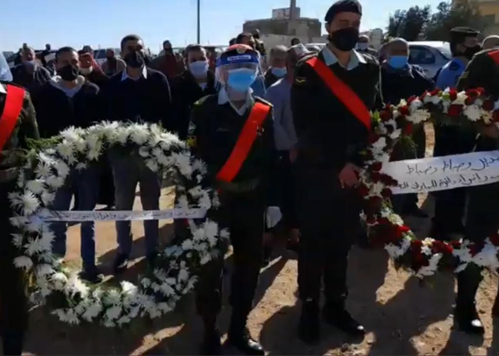 وجرات مراسم عسكرية رسمية لدى وصول الجنازة الى مقبرة العشيرة في نحافظة الكرك.