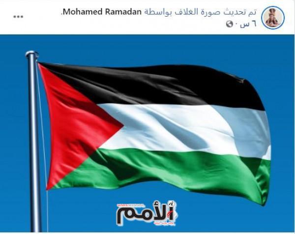 وضع الفنان المصري محمد رمضان صورة العلم الفلسطيني كصورة غلاف لحسابه الشخصي بموقع فيسبوك.