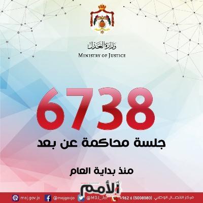 قالت وزارة العدل، الخميس، إنها عقدت 6738 جلسة محاكمة عن بُعد منذ بداية العام الحالي.