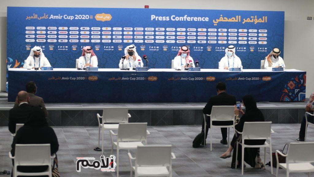 حضر المؤتمر قائد الأمن في المنشأة الرائد عبد الله غانم الغانم، ومدير إدارة التسويق في اللجنة المنظمة خالد الكواري، ومدير علاقات الإعلام ومدير المنشأة حسن الكواري، ومدير إدارة عمليات النقل بالدولة المستضيفة المهندس عبد العزيز المولوي، ومستشار وزير الصحة العامة لشؤون الرياضة والطوارئ الدكتور عبد الوهاب المصلح، وتم خلال المؤتمر الاشارة الى ان 95 % من بطاقات المبارة قد نفذت حتى مساء يوم الامس، وكان قد جرى الاتفاق بين الاتحاد القطري لكرة القدم ووزارة الصحة العامة على تشغيل الملعب بنصف طاقته الاستيعابية فقط، ولن يسمح للجماهير بالدخول إلى الملعب إلا بعد إجراء اختبار كوفيد-19 وإثبات سلبية الفحص، أو تأكيد حملهم لأجسام مضادة للفيروس لمن سبق إصابتهم بالعدوى.
