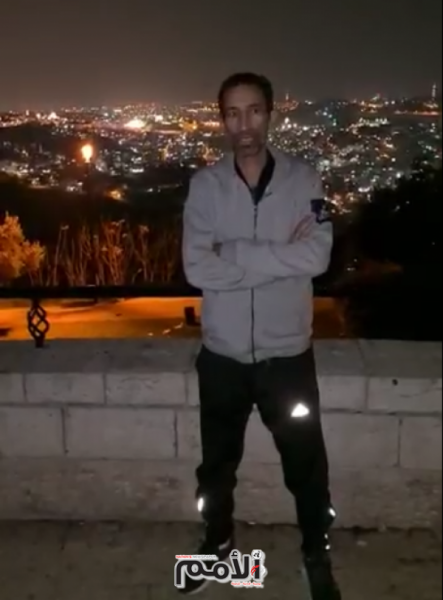 وقال العوضات في مقطع فيديو بثه عبر حسابه في فيسبوك: “أنا الآن في القدس على تلة جبل المكبر، أمامي قبة الصخرة والمسجد الأقصى، حيث رفع يديه عمر بن الخطاب”.