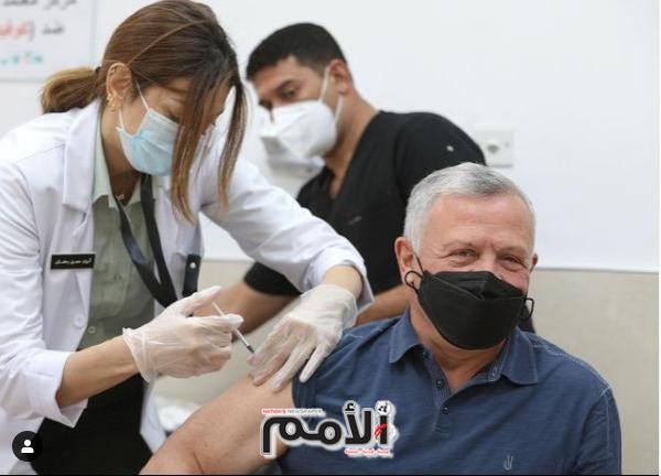نشر سمو الأمير الحسين بن عبدالله الثاني، ولي العهد، صورة لجلالة الملك عبدالله الثاني أثناء تلقي جلالته اللقاح الخاص بفيروس كورونا.