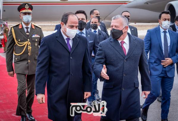 استقبل جلالة الملك عبدالله الثاني وسمو الأمير الحسين بن عبدالله الثاني، ولي العهد، الاثنين، الرئيس المصري عبدالفتاح السيسي، لدى وصوله إلى مطار ماركا في عمان.
