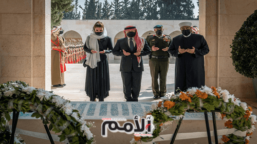 زار الملك عبدالله الثاني و الملكة رانيا العبدالله و الأمير الحسين بن عبدالله الثاني ولي العهد، ضريح المغفور له، بإذن الله، الملك الحسين بن طلال، طيب الله ثراه، بمناسبة الذكرى الثانية والعشرين لرحيله.