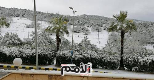 وفق الارصاد الجوية فانه من المحتمل خلال ساعات الفجر والصباح من يوم غد الخميس أن تشهد قمم الجبال العالية في جنوب المملكة هطول زخات من الثلج تكون غالباً ممزوجة مع المطر.