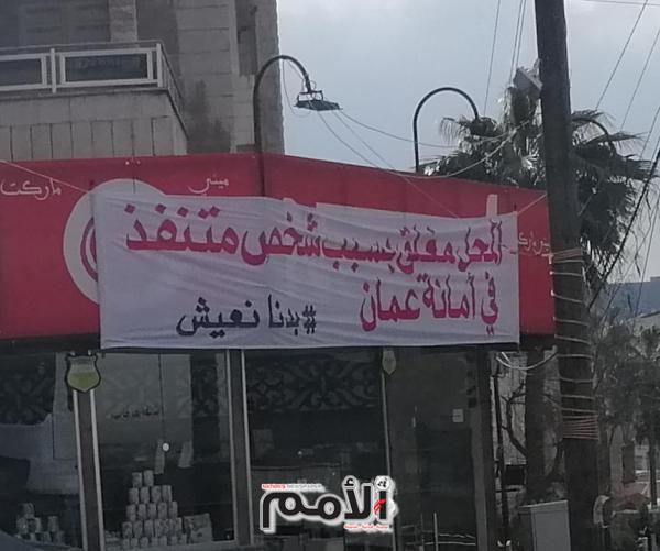 أوضح أمين عمان يوسف الشواربة أن أحد المحلات التي قامت بتعليق لافتة حملت عبارة “مغلق بسبب شخص متنفذ في أمانة عمان وختمها بوسم بدنا نعيش”، يمارس نشاطه بشكل مخالف ودون ترخيص.