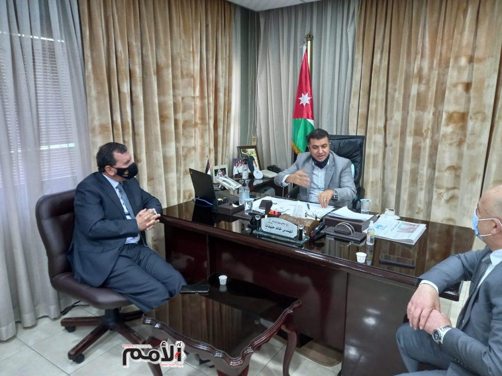 استقبل وزير الزراعة المهندس خالد حنيفات في مكتبه اليوم الاربعاء النائب عن محافظة الزرقاء الدكتور هايل عياش. والاطلاع على خطة الوزارة الخاصة بمحور تشغيل الشباب وبرامج التنمية الريفية وتمكين المرأه والتي تقدر ب٣٥ مليون دينار ضمن الحزمة التحفيزبة الاخيرة وتم التنسيق لزيارة الوزير لمحافظة الزرقاء وسيتم الترتيب مع الجمعيات والمجتمع المحلي للاستفادة من هذه البرامج من قروض بدون فائدة وبرامج تشغيل اضافة الى المزارعين والوقوف على اهم المشاكل والتحديات .
