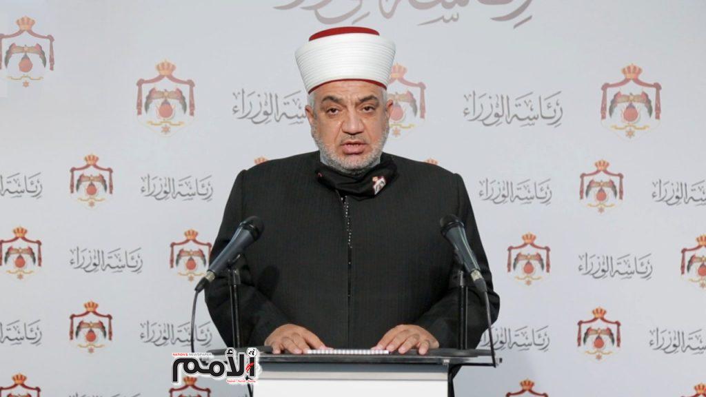 وجدد التأكيد على أن فتح المساجد مخصص فقط لآداء الصلاة، مبينا إلى أن وزارة الأوقاف ملتزمة بما يرد عن الجهات الطبية والصحية في الأردن من توصيات حفاظاً على الصحة العامة، إثر جائحة كورونا.
