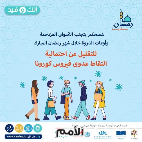 وقالت الوزارة في منشور لها عبر فيسبوك، إن تجنب الأسواق المزدحمة وأوقات الذروة خلال شهر رمضان يقلل من احتمالية التقاط عدوى فيروس كورونا.