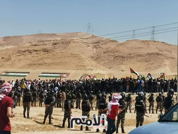أحتشدت أعداد كبيرة من الأردنيين اليوم الجمعة قرب الحدود الأردنية الفلسطينية في منطقة الاغوار الجنوبية نصرة لابناء الشعب الفلسطيني.